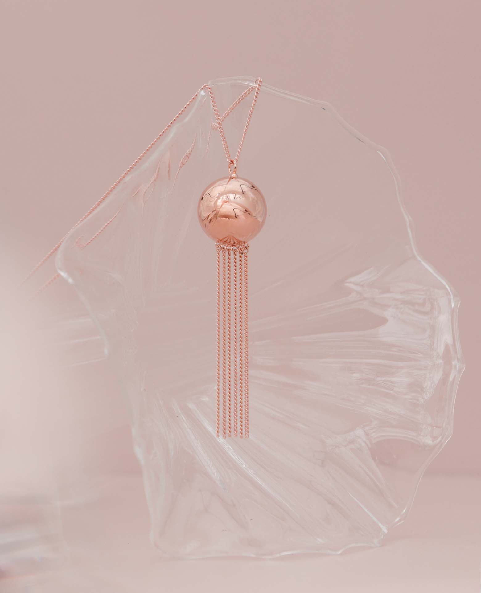 ** Collier 110 cm fermé par une douce goutte doré à l'or rose. Réglable à 95 cm grâce à un anneau intermédiaire