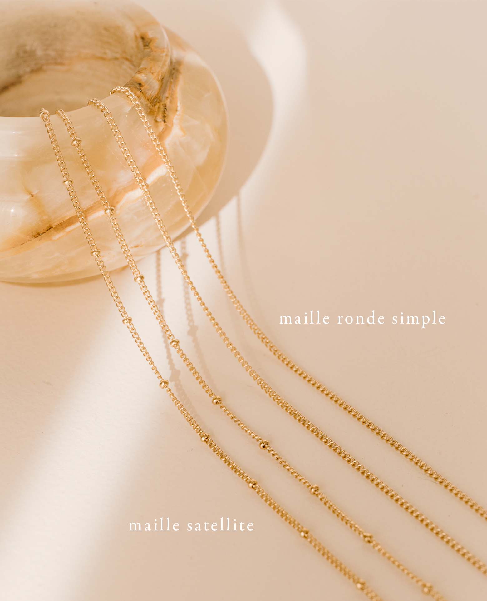 Long sautoir de 110 cm réglable grâce à un anneau intermédiaire, placez-le au niveau de votre ventre.