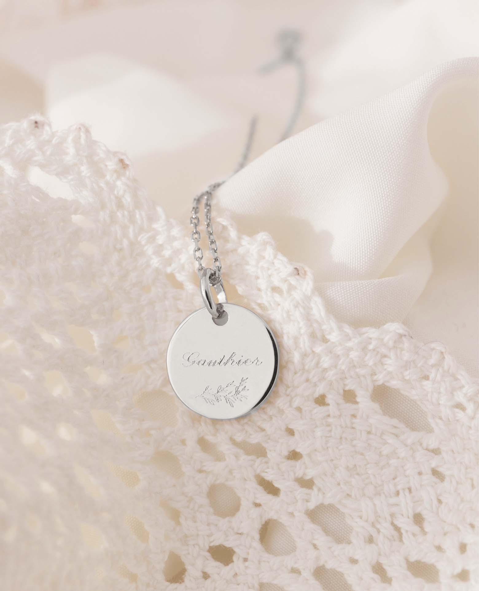 Collier composé d’une médaille de 15 mm et d’une chaîne de 38 cm (par défaut), tous deux en argent 925.