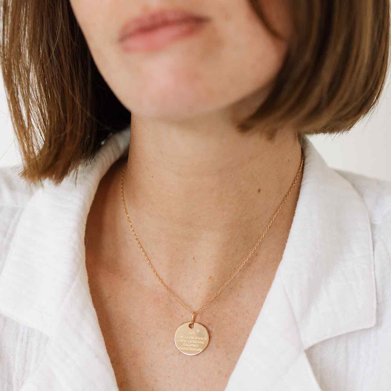 Bijou porteur de sens et d'amour que vous pourrez personnaliser au dos pour y ajouter ce qui vous tient à cœur : un mot, une date, etc. Ce pendentif personnalisé a été imaginé pour être le plus unique et singulier possible.